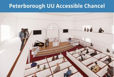 Help fund the $260,000 Accessible Chancel renovation project that aims to make the historic Peterborough UU meeting house chancel fully accessible to all. This project calls for an ADA-compliant redesign with a lowered chancel, movable pulpit, new ramp, upgraded sound and lighting system, and an ADA-compliant entry door.