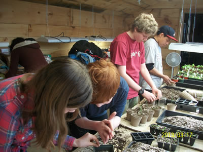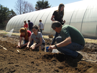 The Coming of Age curriculum is for middle school kids who are mostly 8th grade students that will be transitioning into high school. This year, our Coming of Age kids got involved with Otter Brook Farm in Peterborough. They met several times over the course of the year, helping Farm Manager, Matthew Roy with planting seeds, moving firewood, moving soil, painting, transplanting seedlings, planting strawberries and many other tasks at the farm. Not only did they dig into the soil, but also their spirituality while they worked. Matthew provided his own inspiration, spiritual wisdom, the relationship we have with the earth and its processes including our necessary devotion to its delicate balance and how it relates to our lives. The kids were able to nurture their souls and well as the earth. They also were involved in social justice by planting greens for the church's long-standing Community Supper program. These greens were delivered faithfully to the church by Matthew to contribute to the Wednesday night meal, providing a local, sustainable addition to a well attended supper.